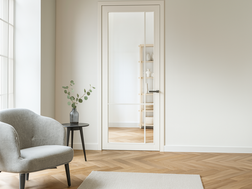 De Cover Glass is een strak vormgegeven binnendeur met glas. De deur is afgewerkt met een duurzame EBC-lak die zorgt voor een matte look en uitstekende krasbestendigheid. Dankzij deze hoogwaardige laklaag is de deur onderhoudsarm en goed bestand tegen dagelijks gebruik.