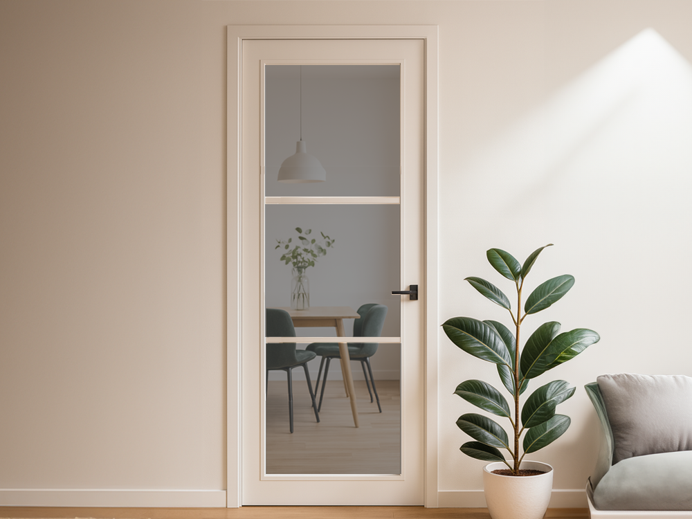 Moderne binnendeur met veiligheidsglas en luxe uitstraling