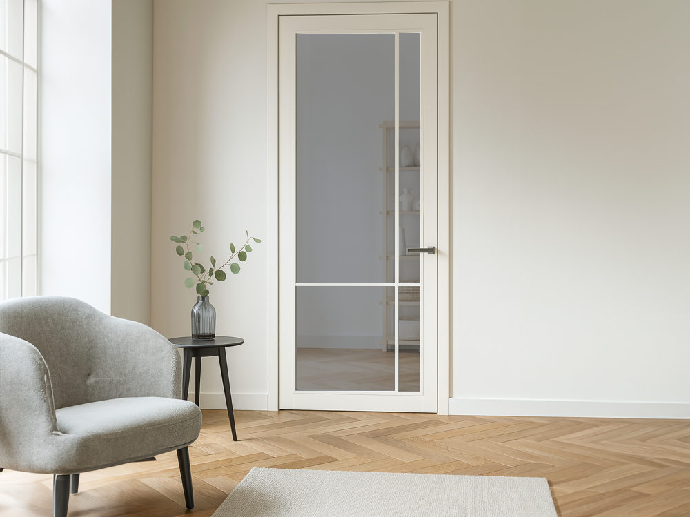 De Cando Cover Glass COV3-BE04 is dé glazen binnendeur voor wie houdt van licht, ruimte en minimalisme. Met zijn verticale glasverdeling en strak wit kader zorgt dit design voor een rustgevende uitstraling en een luxe effect.