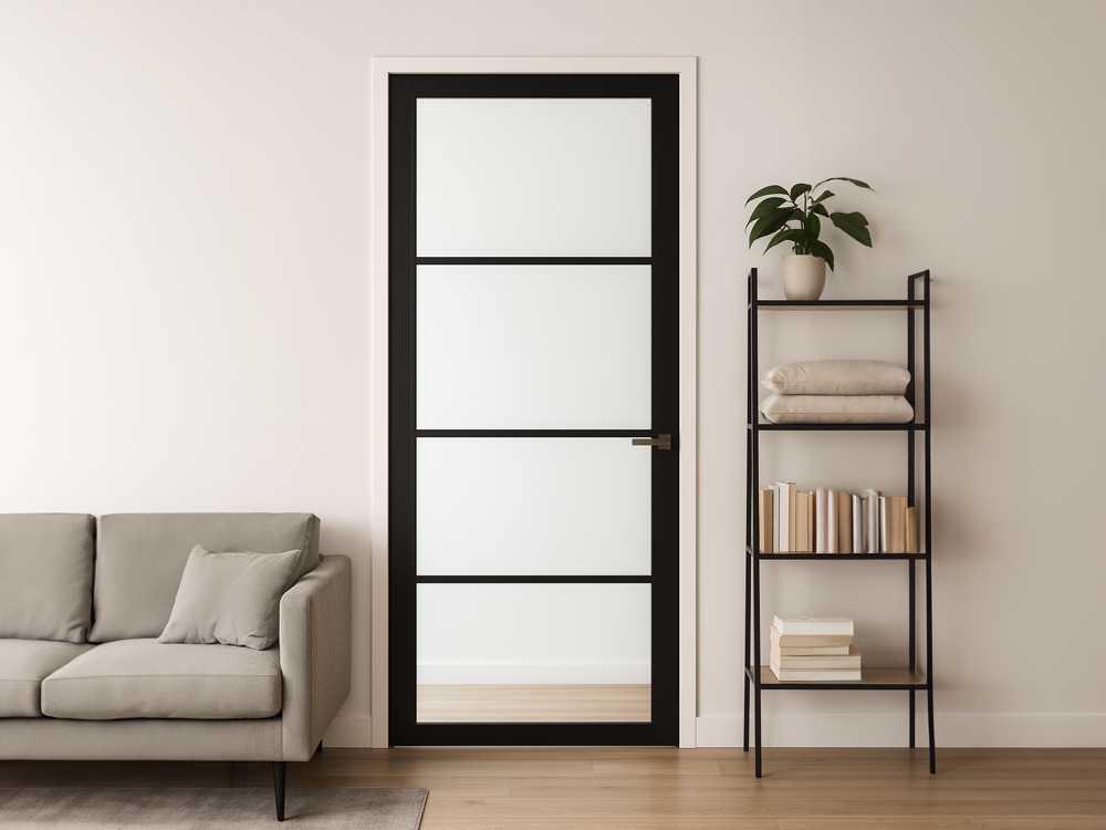 Veel mensen zoeken een glazen binnendeur met karakter, maar willen niet inleveren op stevigheid of kwaliteit. Deze binnendeur met 4 glasvlakken combineert een modern design met optimale functionaliteit. De voorlak zorgt voor een directe montage, wat tijd en geld bespaart tijdens de renovatie of nieuwbouw.