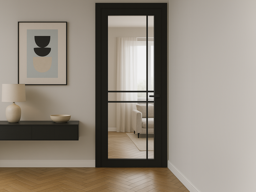 Ben je op zoek naar een moderne binnendeur met glas die perfect past in een industrieel of minimalistisch interieur? Dan is de Cando Cover Glass COV3-DC05 de ideale keuze. De strakke lijnen en het smalle profiel zorgen voor een chique uitstraling. Dankzij de glasverdeling stroomt daglicht moeiteloos door je woning, terwijl de volspaan kern zorgt voor extra geluidsisolatie en een solide gevoel.