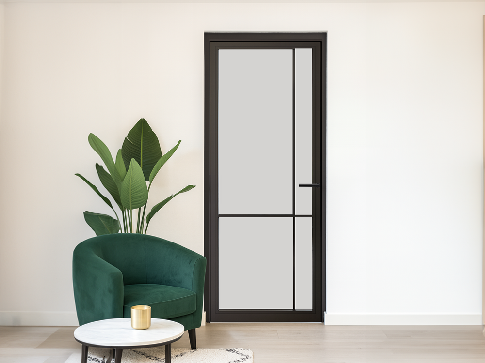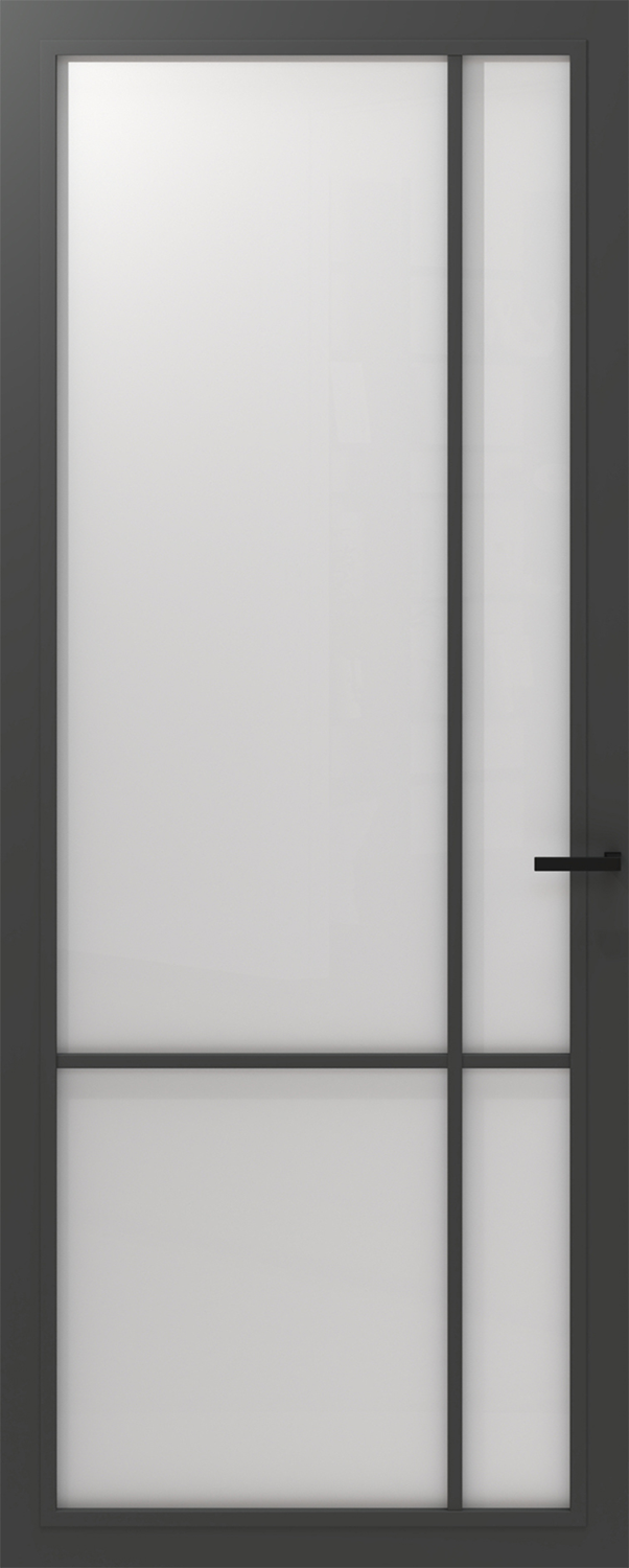 De Cando Cover Glass COV3-FD04 is een stijlvolle binnendeur met zwart frame en mat veiligheidsglas. Het industriële ontwerp biedt een perfecte balans tussen lichtinval en privacy.