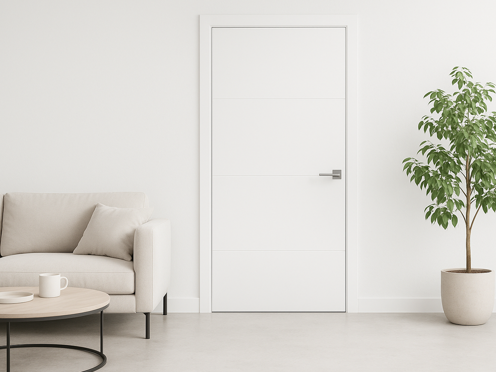 Moderne witte binnendeur met twee horizontale lijnen,