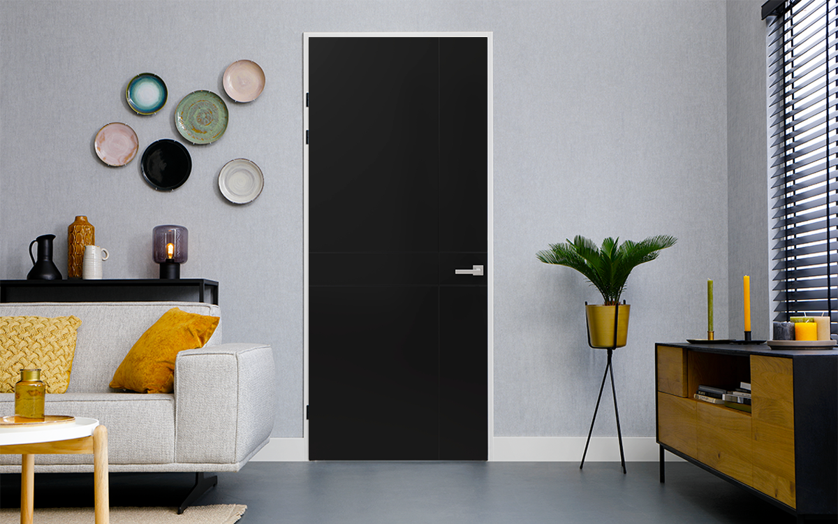Luxe zwarte binnendeur met unieke vlakverdeling