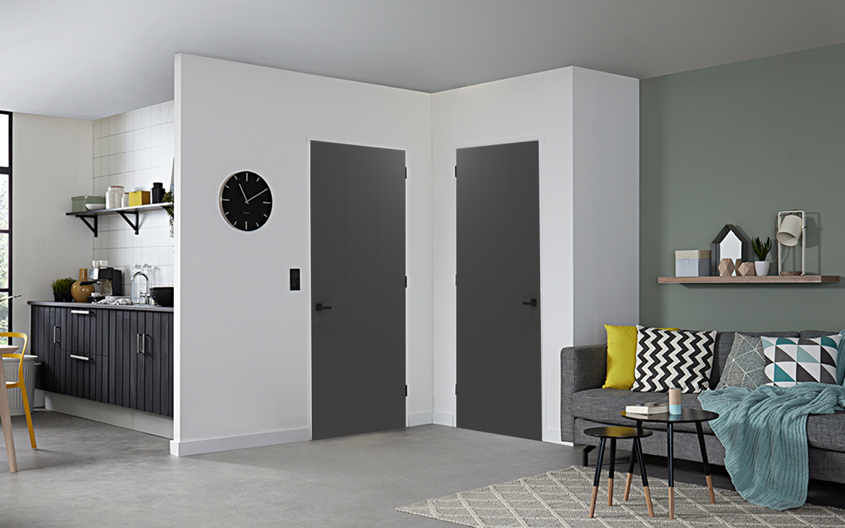 Combineer deze design binnendeur zwart met modern beslag om een krachtig geheel te creëren dat jouw interieur naar een hoger niveau tilt.
