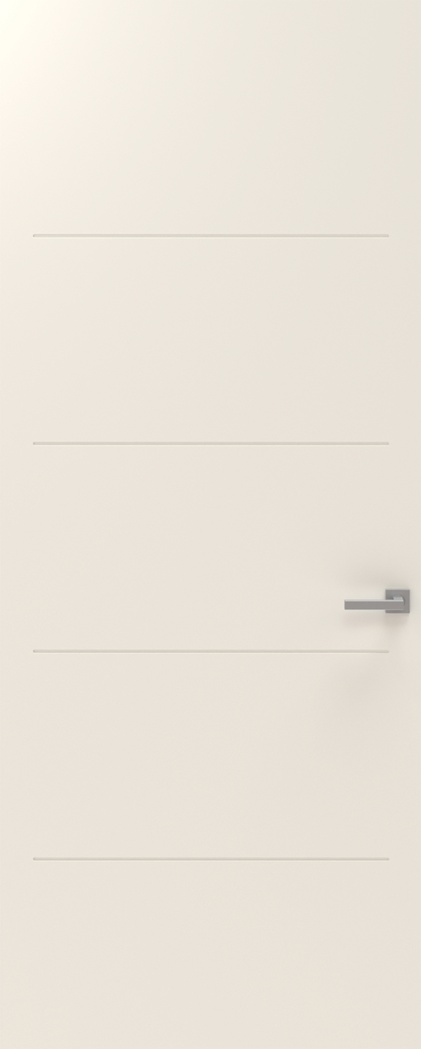 De Cando Cover Plus COV2-BA07 is een moderne witte binnendeur met vier horizontale lijnen. Dankzij de stevige tubespaan kern en krasvaste EBC-lak combineert deze deur elegantie en kwaliteit. Onderhoudsvriendelijk en ideaal voor een strak en eigentijds interieur.