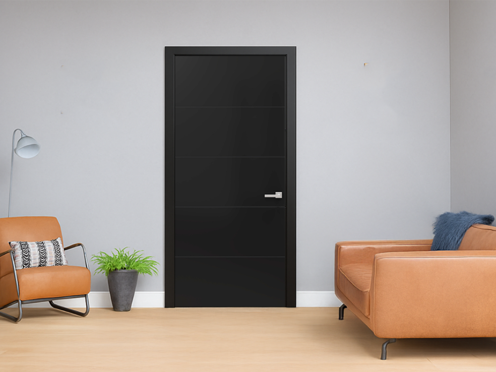 Of je nu een industrieel, minimalistisch of modern interieur hebt, deze deur past er moeiteloos in. De diepe zwarte kleur straalt klasse en luxe uit, terwijl de strakke belijning rust en eenvoud biedt.