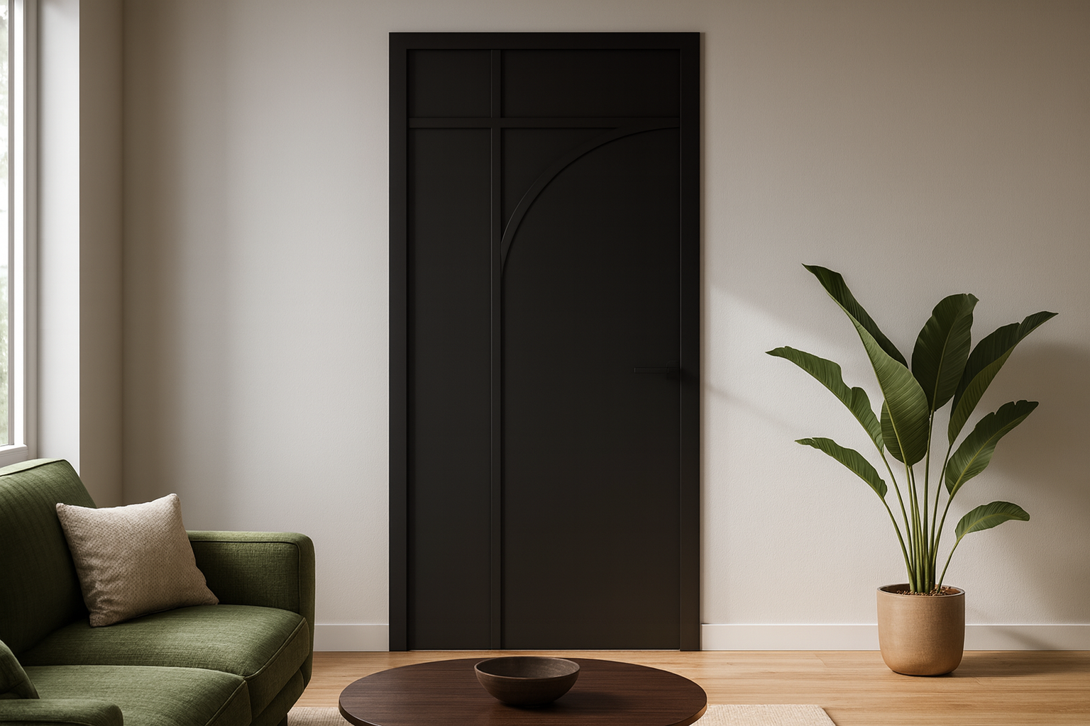 Deze deur biedt meer dan alleen een mooi design. De houten opbouw zorgt voor duurzaamheid, terwijl de diepe zwarte look perfect past bij moderne interieurs. De uitvoering is ideaal voor woningen waar rust, eenvoud en stijl samen moeten komen. Door de aflakservice kun je de deur precies afwerken naar je interieur.