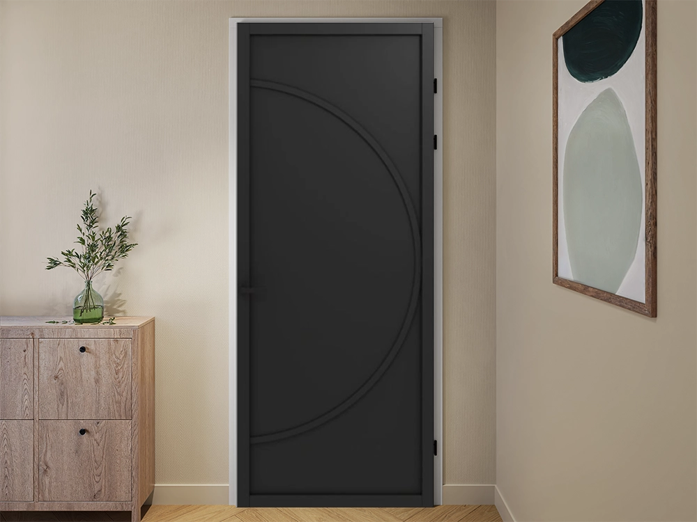 De deur voelt zwaar en luxe door de solide opbouw. Dit versterkt het gevoel van kwaliteit. Het ronde ontwerp maakt de deur zachter dan rechte varianten. Hierdoor werkt de zwarte binnendeur goed in lichte ruimtes waar contrast gewenst is. De gegronde afwerking maakt aflakken eenvoudig, zodat de deur precies aansluit bij je interieur.