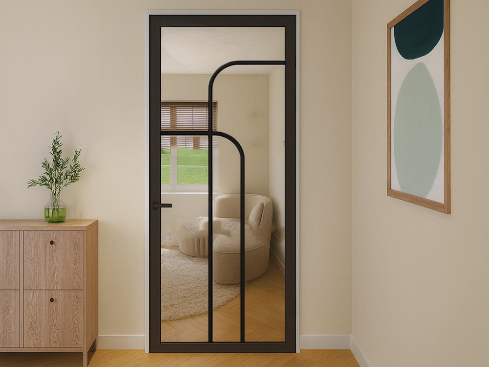 De Elegant Flow ELG2-1C05 onderscheidt zich door het ontwerp met twee vloeiende lijnen. Het glas zorgt voor een open en ruimtelijk gevoel. Het zwart gegronde frame zorgt voor contrast en geeft diepte. Deze combinatie maakt de deur ideaal voor wie een zwarte glazen deur zoekt met karakter en rust.