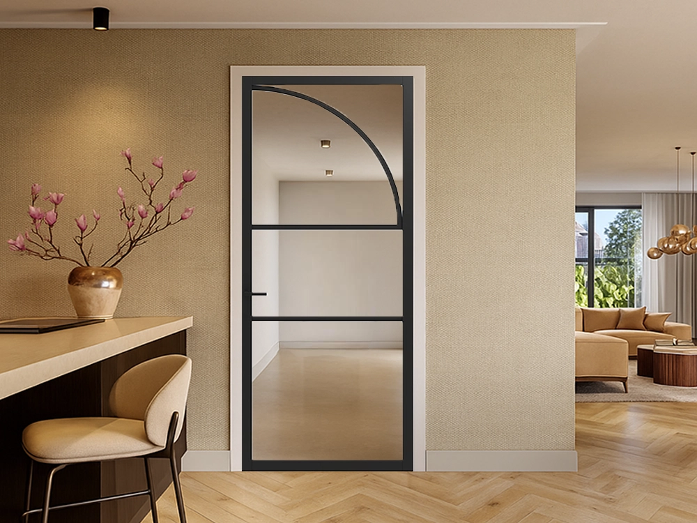 Deze zwarte binnendeur met glas laat veel licht door, dankzij de royale glasverdeling. Het glas maakt de ruimte optisch groter en zorgt voor een rustige, open sfeer. De deur sluit perfect aan bij industriële, moderne en minimalistische woonstijlen. Dankzij de houten stijlen en dorpels voelt de deur stevig aan en blijft hij jarenlang stabiel in dagelijks gebruik.