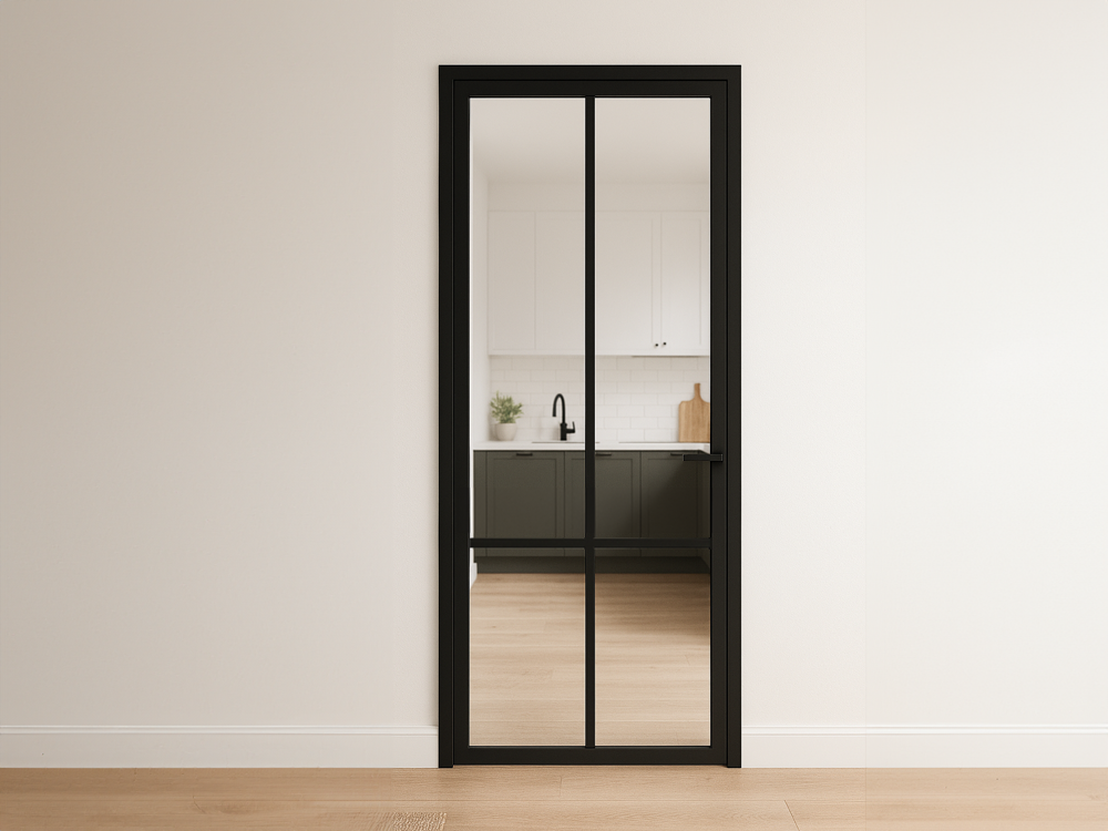 Met zijn grote glasvlakken brengt deze deur meer licht en openheid in huis. Perfect voor het verbinden van ruimtes zonder in te leveren op ruimtelijkheid. Deze deur is ideaal voor de woonkamer, keuken en in kantoren waar transparantie en lichtinval belangrijk zijn.