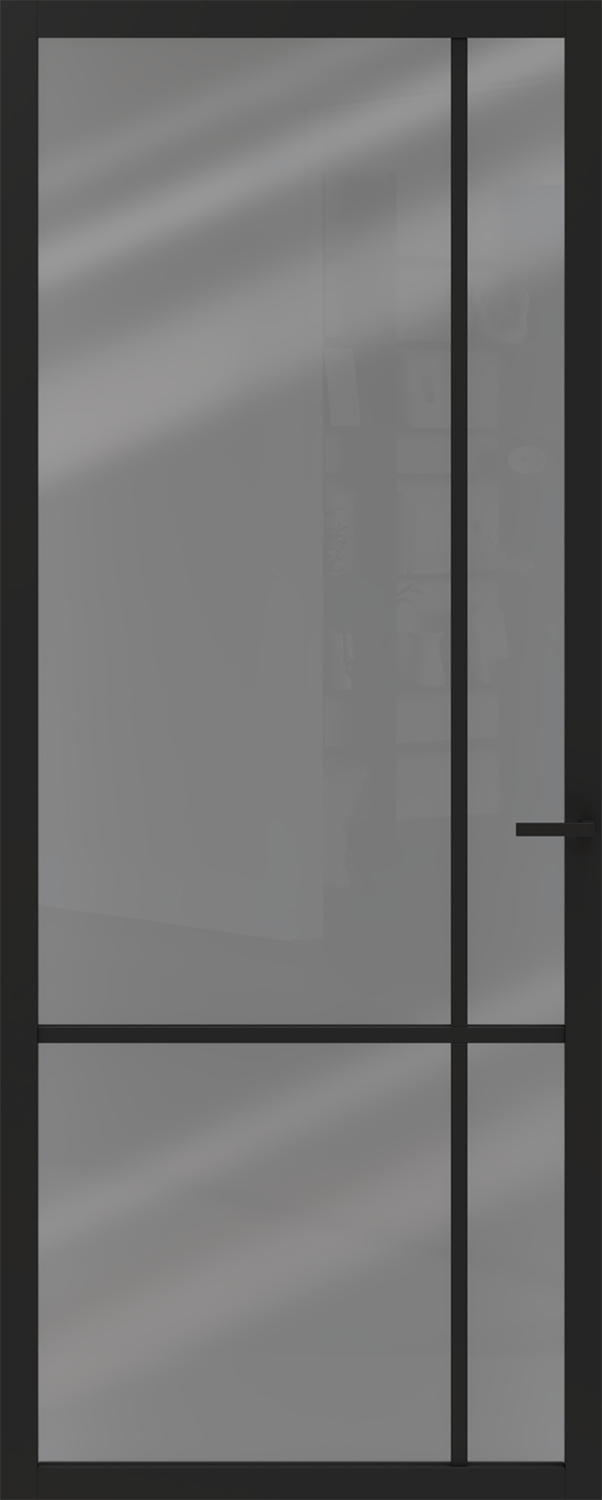 De Cando Elegant Original ELG1-1E04 is een strakke binnendeur die een industrieel karakter toevoegt aan jouw interieur. Het ontwerp bestaat uit een robuuste zwarte omlijsting met vier glasvlakken. Hierdoor geniet je van veel lichtinval en creëer je een open en ruimtelijk gevoel in huis.