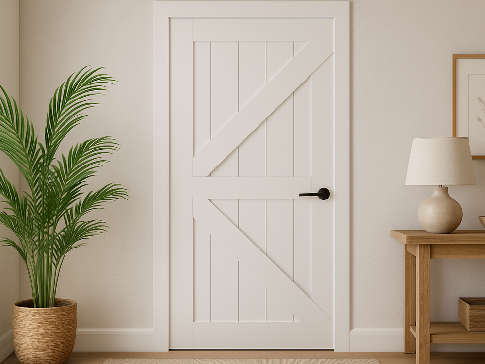 Deze landelijke binnendeur past uitstekend bij een interieur waar natuurlijke materialen en tijdloze vormen centraal staan. Of je nu kiest voor een fris wit of een warme tint, de deur versterkt de authentieke uitstraling van een landelijke woonstijl.
