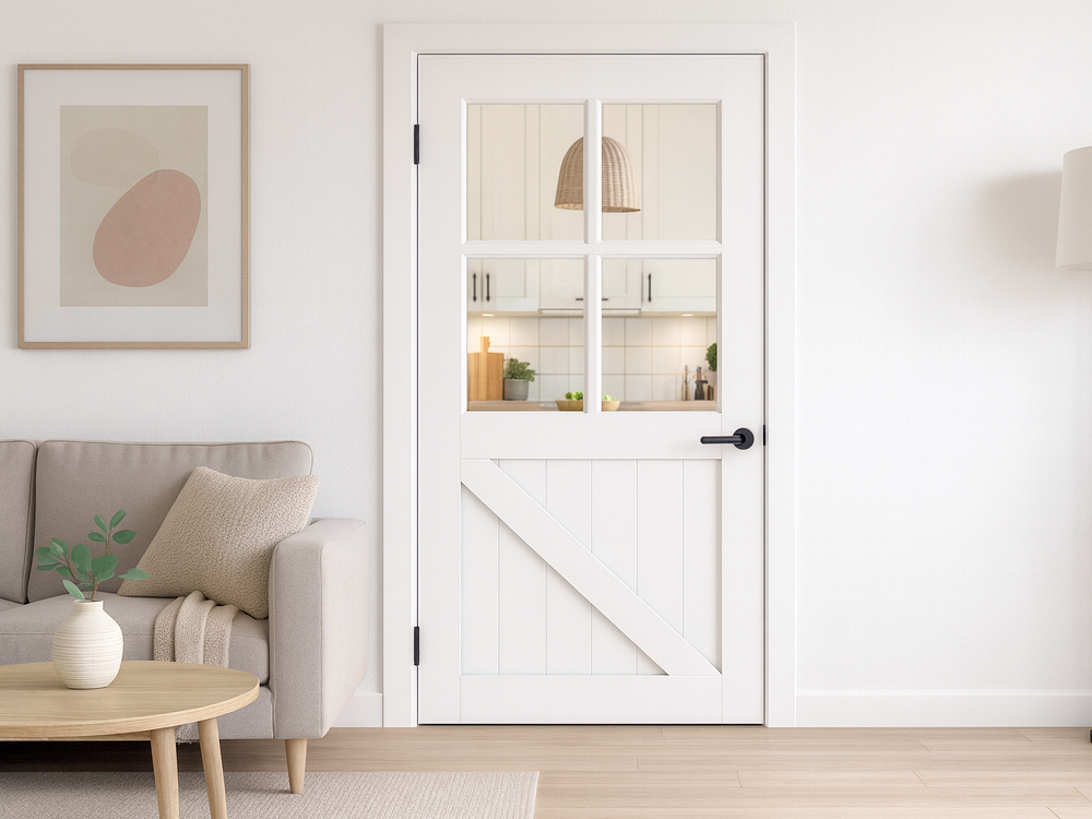 Geef je woning landelijke charme met de Cando Panel Barn PNL4-2D02. Deze witte binnendeur met mat veiligheidsglas past perfect in een landelijke woonstijl. Wit gegrond en klaar om af te lakken in elke gewenste kleur.