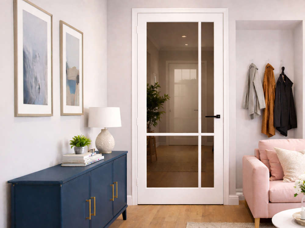 De Skantrae SKL 9842 Volspaan past perfect in open woonconcepten, hallen of kantoorruimtes waar natuurlijk licht belangrijk is. De strakke verdeling van het glas zorgt voor een moderne balans tussen stijl en functionaliteit.