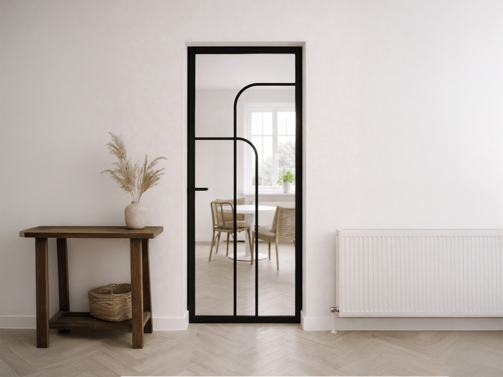 De Skantrae SSL 4515 past perfect in moderne interieurs waar licht, ruimte en design samenkomen. Deze zwart voorbehandelde binnendeur met glas brengt een moderne, speelse twist naar je interieur. Voeg de deur toe aan je bestelling en combineer met het zwart deurbeslag tijdens het samenstellen voor een samenhangend geheel.