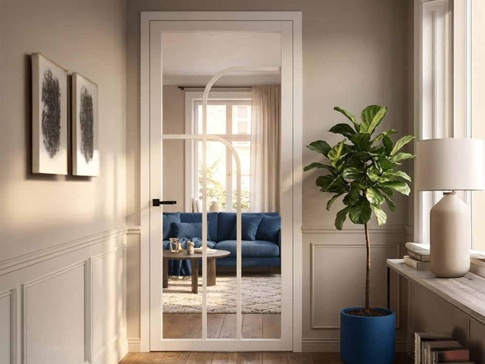 De binnendeur is voorbehandeld in zuiver wit, waardoor je hem meteen kunt aflakken. Dankzij de houten stijlen en dorpels is de constructie stabiel, duurzaam en van hoge kwaliteit. Deze binnendeur uit de Skantrae SlimSeries One lijn zorgt voor een moderne uitstraling die perfect past binnen hedendaagse interieurs.